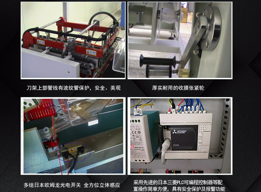 2.配有進口檢測光電,水平、垂直檢測各一組,便于切換選擇,對于薄與小的包裝物,可輕易完成封口包裝作業(yè)。